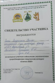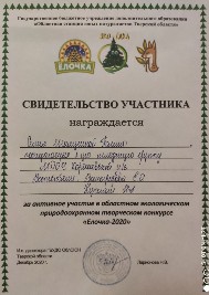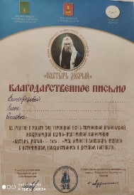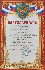 Благодарственное письмо за активное участие и подготовку победителей в конкурсе «У природы в гостях» ВПО Доверие |